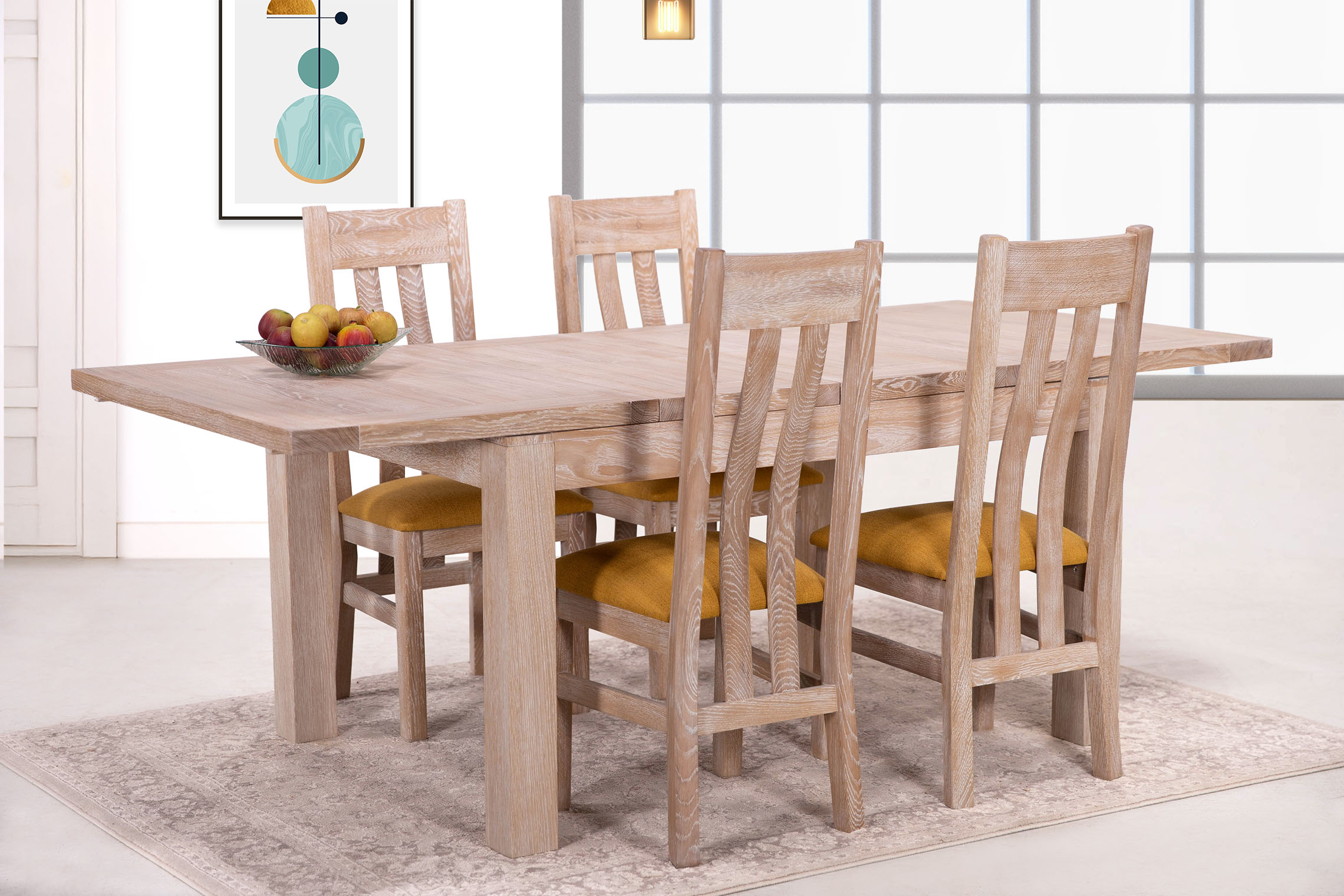 🪵 Table de repas rectangulaire – Ligne Contemporaine Apportez une touche d’élégance naturelle à votre salle à manger avec cette table en chêne massif, conçue dans un esprit contemporain et épuré. Caractéristiques : Dimensions : 140 × 100 cm + 2 allonges* portefeuille de 40 cm Système dÂ’allonge : Ouverture synchronisée avec coulisses métalliques pour une manipulation fluide Rangement astucieux : Les allonges* se logent discrètement sous le plateau Finition : Chêne brossé blanchi, pour un rendu lumineux et texturé Échantillons disponibles : Envie de voir et toucher le bois avant de vous décider ? Demandez nos échantillons pour apprécier la qualité et la teinte du chêne brossé blanchi.