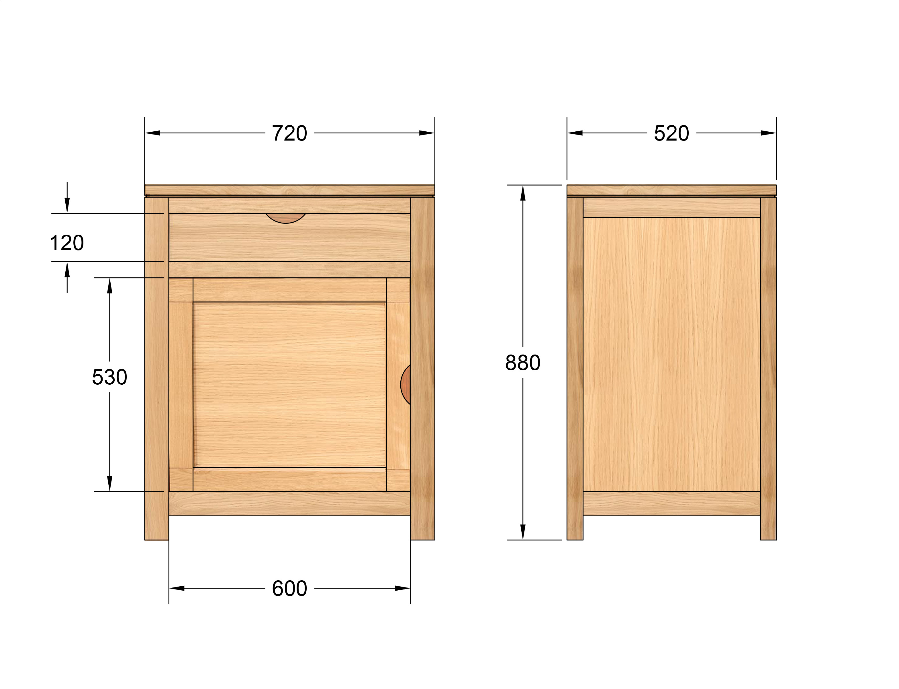 Confiturier 1 porte 1 tiroir réalisé chêne de ligne Contemporaine