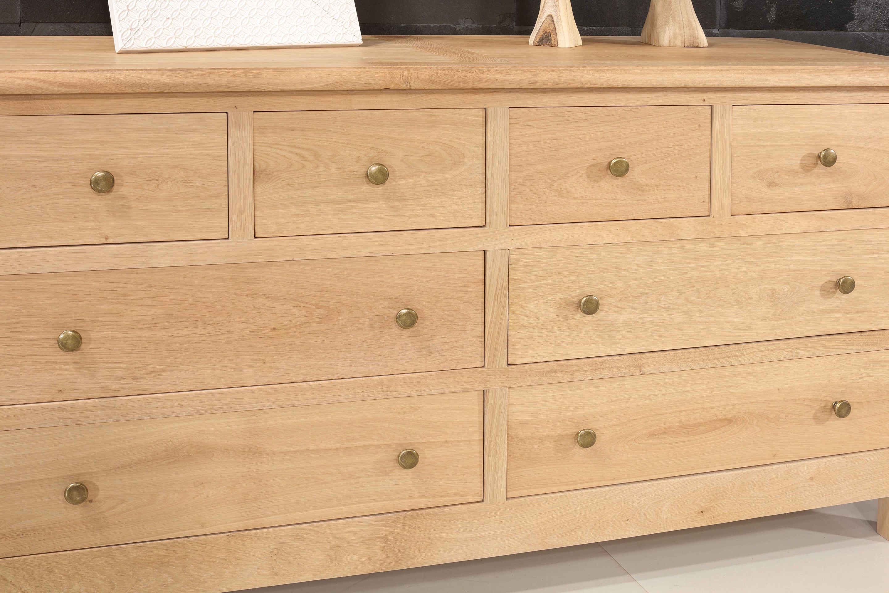 Commode 8 tiroirs en chêne massif – Style Campagnard Apportez charme et robustesse à votre intérieur avec cette commode 8 tiroirs réalisée en chêne massif. Fabrication traditionnelle : tiroirs assemblés en queue d’aronde pour une solidité durable Matériaux nobles : structure 100 % chêne massif, fonds en frêne massif Praticité : plateau démontable avec vis de rappel, facilitant montage et transport Finition personnalisée : chêne brossé naturel ou teinte au choix selon vos envies Échantillons gratuits : disponibles sur simple demande pour valider la couleur et le rendu. Une commode intemporelle qui allie authenticité, élégance et fonctionnalité, parfaite pour un intérieur chaleureux.