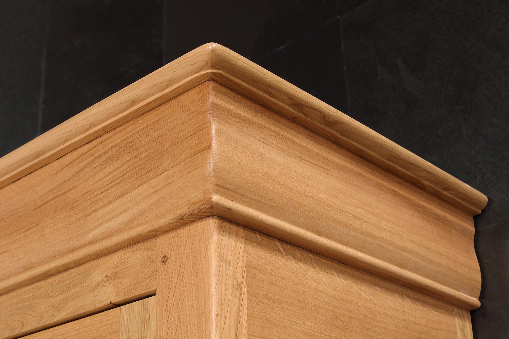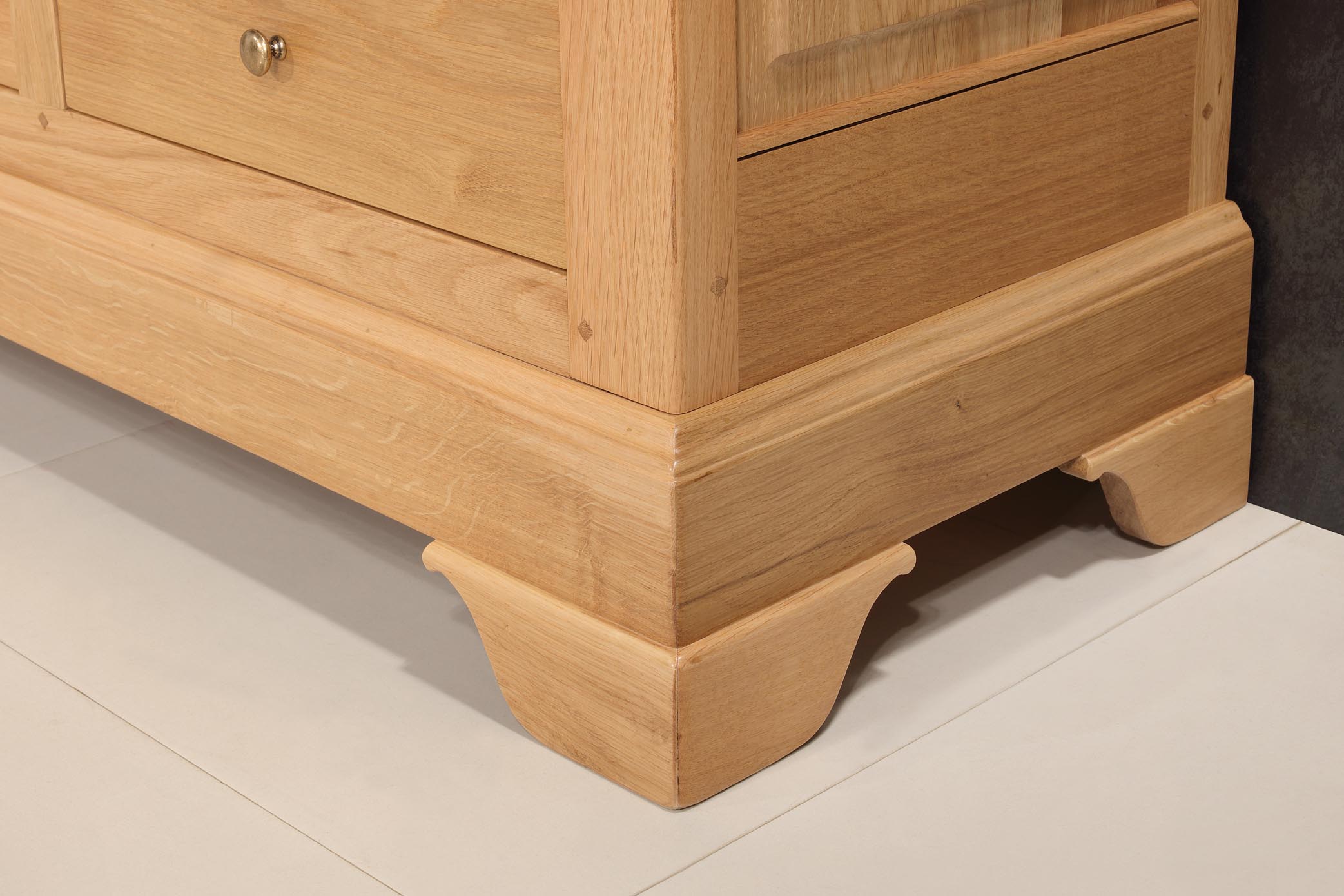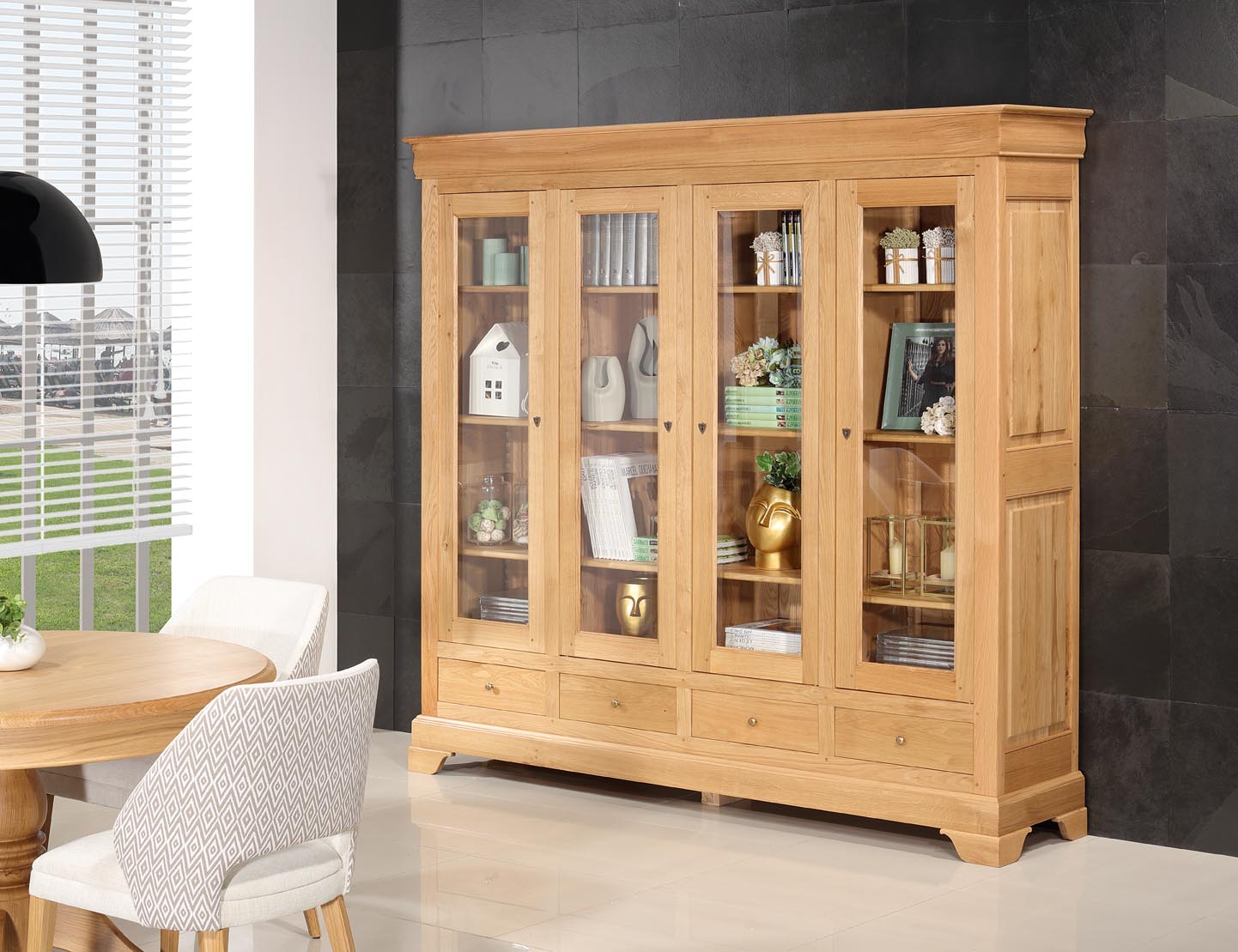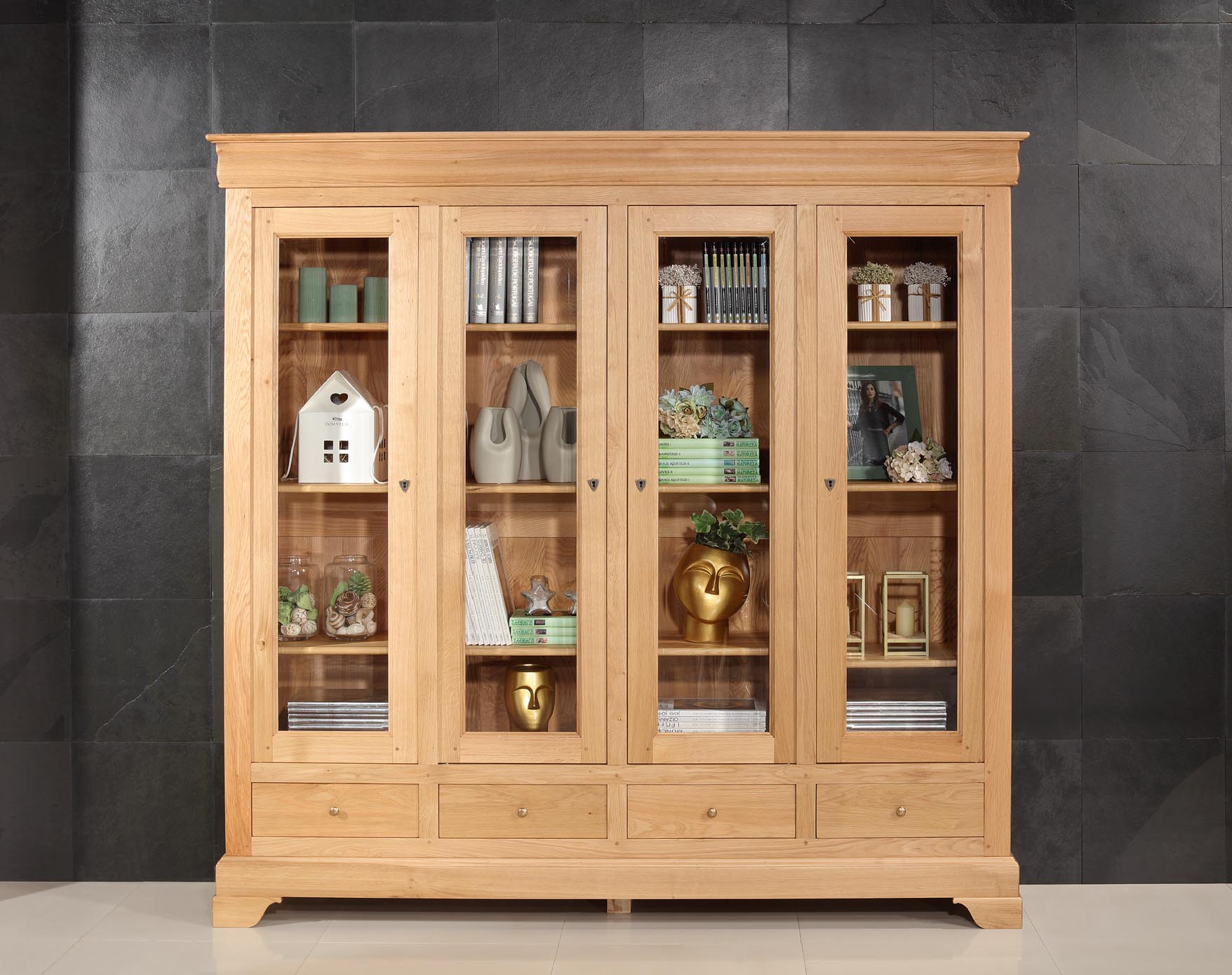 Bibliothèque 4 Portes en Chêne Massif de style Louis Philippe, Caractéristiques principales : 4 portes vitrées équipées de verres biseautés, apportant luminosité et raffinement. 3 étagères intérieures montées sur crémaillères en bois, permettant un réglage précis de la hauteur. 4 tiroirs assemblés en queue d’aronde, gage de solidité et de longévité. Assemblages traditionnels : tenons, mortaises. Fonds et étagères en frêne massif, choisis pour leur stabilité et leur finesse. Finition chêne naturel ciré et lustré, ou selon selon votre convenance, Demandez nos échantillons de chêne gratuit